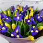 Букет из синих ирисов и желтых тюльпанов в Пскове