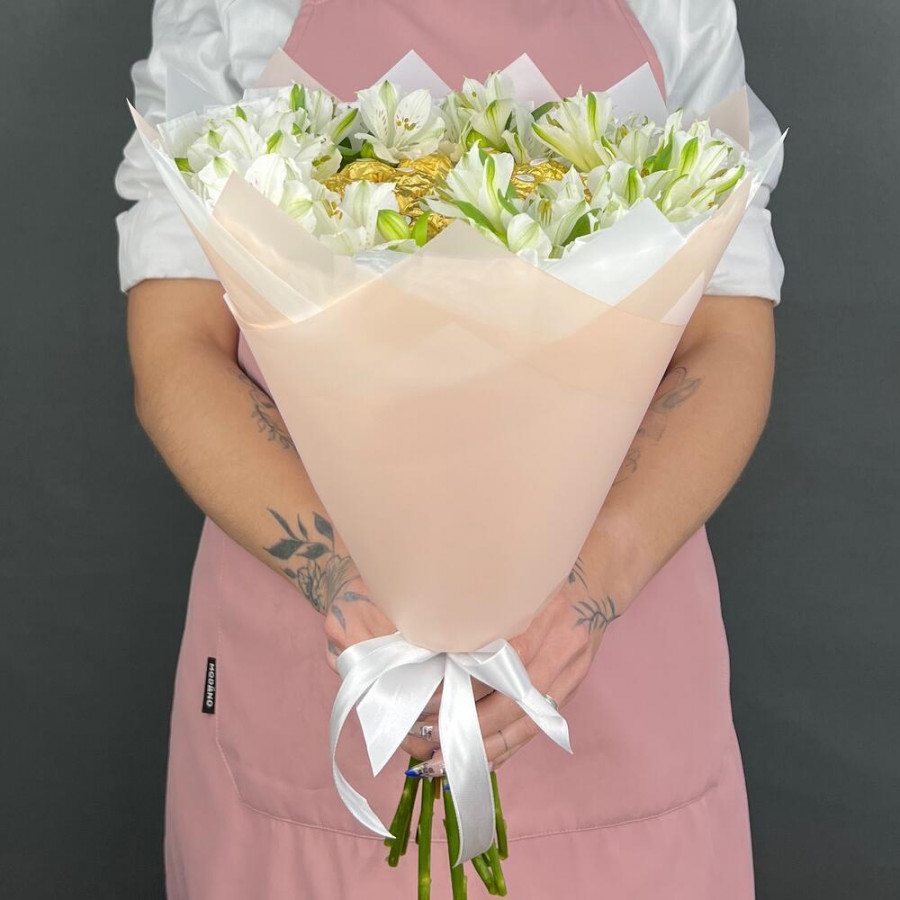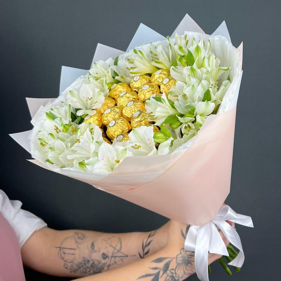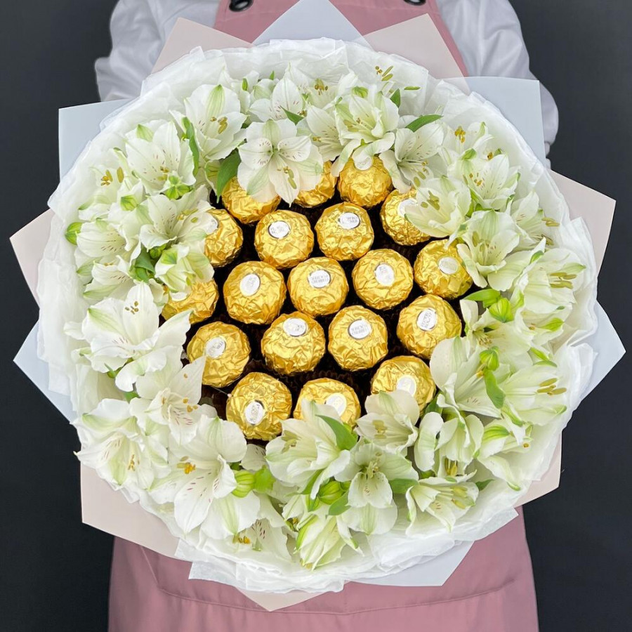 Букет из конфет Ferrero Rocher и и альстромерии в Пскове